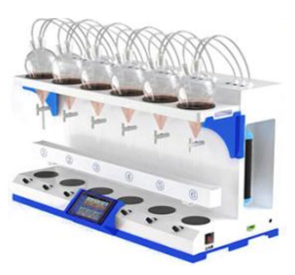 HX-YY6000全自動液液萃取儀采用新封閉式靜音潔凈空氣內循環(huán)震蕩原理,雙向氣液混合技術,用于實驗室水質檢測水中油、揮發(fā)酚、陰離子等項目的液液萃取前處理